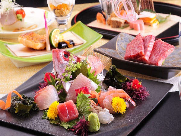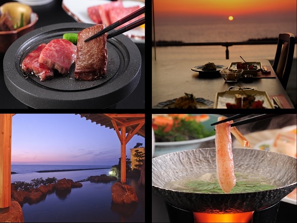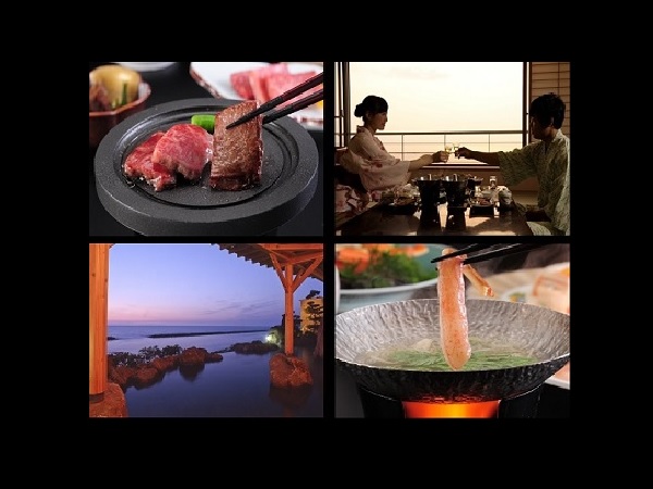 【村上市早期回復応援事業★3,000円割引】★お鍋が2種類!県内産の和牛鉄板焼き&蟹のしゃぶしゃぶをメインに四季折々の特選料理!【夕食レストラン】