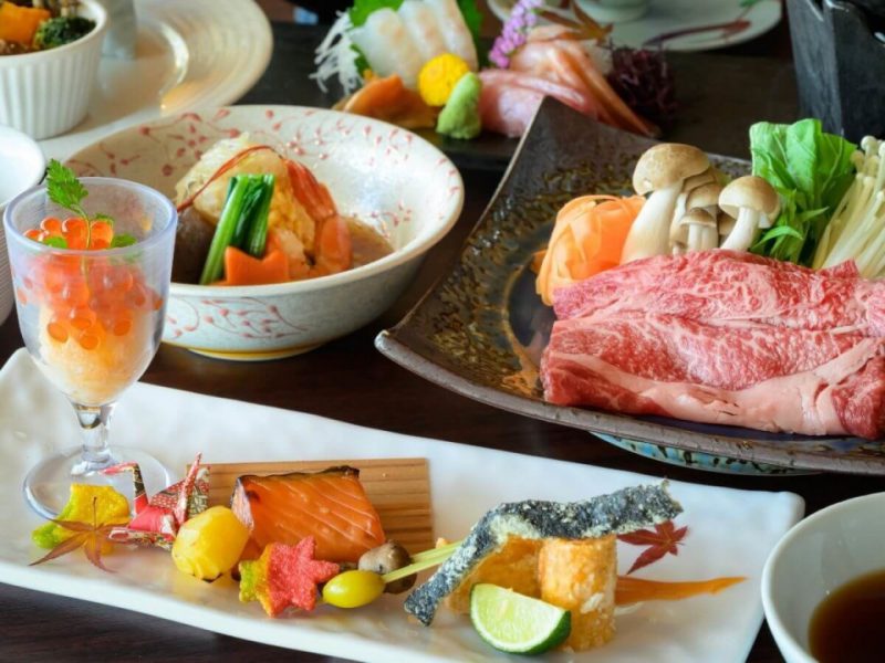 『国産牛のしゃぶしゃぶ』をメインに、 旬の海鮮料理や岩船産コシヒカリ100%の釜飯など、その他料理長お任せの特選料理です。 四季折々の旬の食材・地の食材をご堪能ください。
