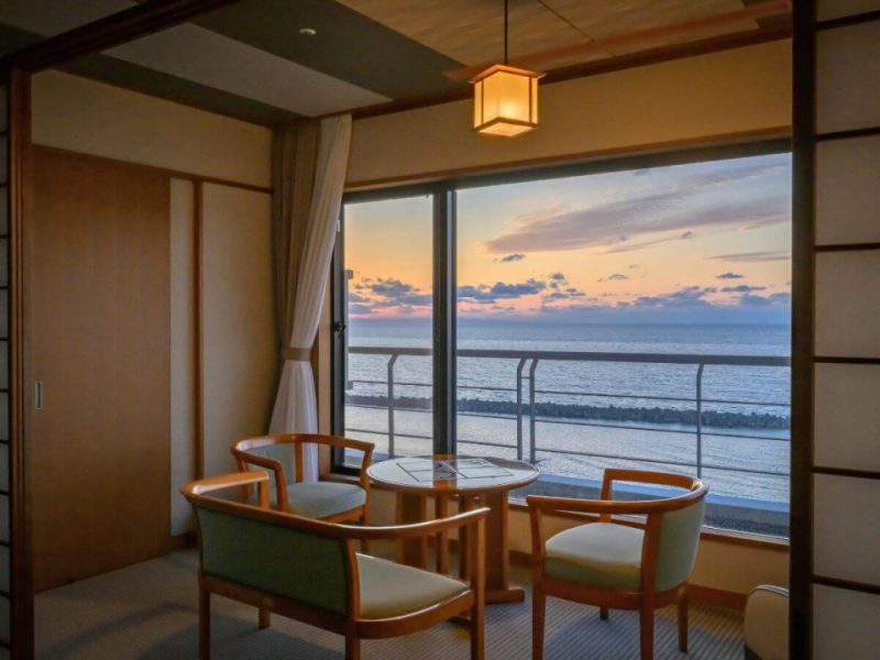 お部屋の露天風呂は沸かし湯であることも多い中、当館の「大観」露天風呂付客室は贅沢な源泉かけ流し。24時間、好きな時に、好きなだけ。プライベートな空間で時間を気にせず瀬波の名湯をお楽しみいただけます。
